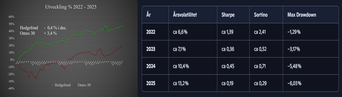 - Maximal drawdown per år: mellan −1,29 % och −6,03 %